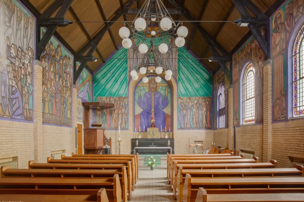 Het Oud-Katholieke kerkje aan de Zoeterwoudsesingel (bekend vanwege de muurschilderingen van